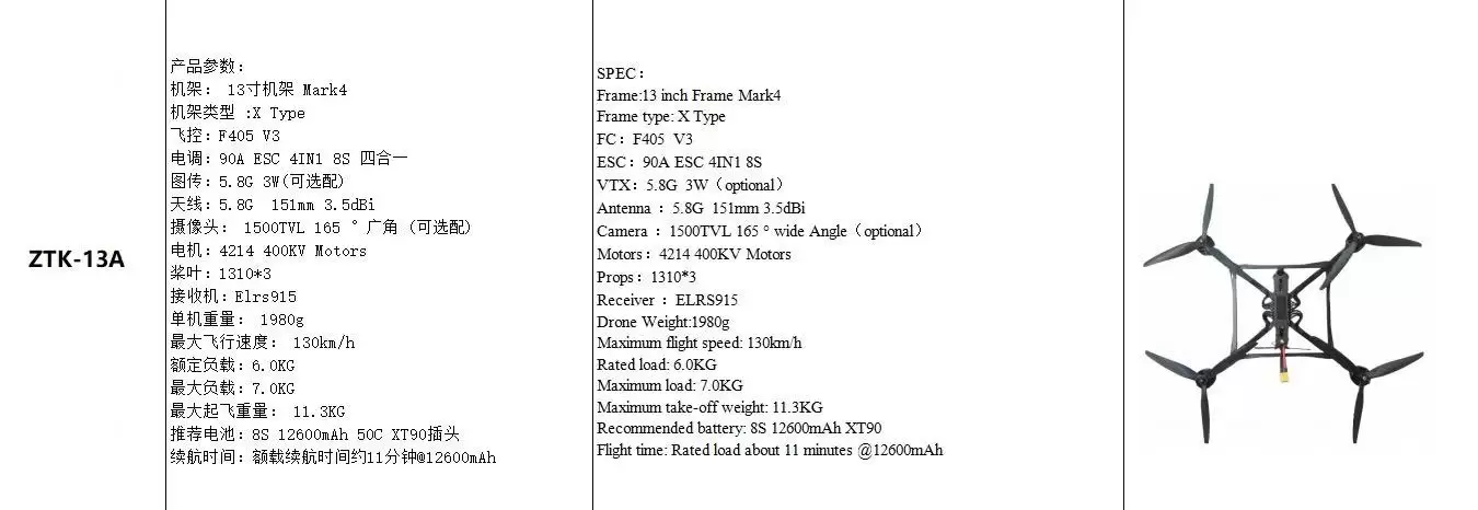 บ้าน / ผลิตภัณฑ์ / แพลตฟอร์มโดรน / โดรน FPV / โดรน FPV 13A FPV ขนาด 13 นิ้ว พร้อมระบบนำทาง AI และการส่งสัญญาณไฟเบอร์ออปติก วัสดุตัวเครื่อง: คาร์บอนไฟเบอร์