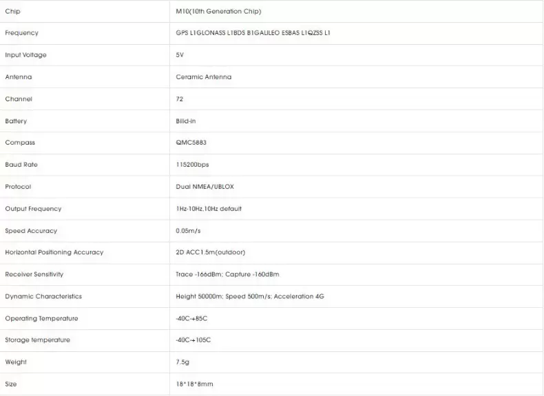 Foxeer M10Q 120 GPS เป็นโมดูลนำทางประสิทธิภาพสูงที่ออกแบบมาโดยเฉพาะสำหรับเครื่องบิน RC และโดรน FPV โดยมีชิปรุ่นที่ 10 ขั้นสูง (M10) ที่ให้การนำทางที่แม่นยำและเชื่อถือได้ รองรับกลุ่มดาวเทียมหลายกลุ่ม รวมถึง GPS L1, GLONASS L1, BDS B1, Galileo E, SBAS L1 และ QZSS L1 เพื่อการระบุตำแหน่งที่แม่นยำในช่วงกว้าง มาพร้อมเข็มทิศ QMC5883 ในตัวเพื่อให้ข้อมูลทิศทางที่แม่นยำ (รับรองการบินที่เสถียรแม้ในสภาพแวดล้อมแม่เหล็กที่ท้าทาย) และเสาอากาศเซรามิกประสิทธิภาพสูง (พร้อมความไวในการติดตาม -166 dBm และความไวในการจับภาพ -160 dBm) เพื่อการรับสัญญาณและความเสถียรที่ดีขึ้น ขณะเดียวกันก็รองรับโปรโตคอล NMEA/UBX คู่เพื่อการบูรณาการที่ง่ายดายกับระบบต่างๆ และความถี่เอาต์พุตที่กำหนดค่าได้ตั้งแต่ 1Hz ถึง 10Hz (ค่าเริ่มต้น 10Hz) เพื่อตอบสนองความต้องการที่แตกต่างกัน ในแง่ของข้อมูลจำเพาะ มีแรงดันไฟฟ้าขาเข้า 5V อัตราบอดเรท 115200 bps ความแม่นยำของความเร็ว 0.05 m/s ความแม่นยำในการระบุตำแหน่งแนวนอน 1.5 m (กลางแจ้ง) ลักษณะไดนามิกรวมถึงความสูงสูงสุด 50,000 ม. ความเร็วสูงสุด 500 m/s และความเร่งสูงสุด 4g ช่วงอุณหภูมิในการทำงาน -40°C ถึง +85°C ช่วงอุณหภูมิในการจัดเก็บ -40°C ถึง +105°C น้ำหนักเพียง 2.7 กรัม และมีขนาด 12.5 * 17 * 5 มม. โดยแพ็คเกจประกอบด้วยโมดูล GPS M10Q 120 1 ชิ้นและสายเคเบิลชุด 1 เส้น